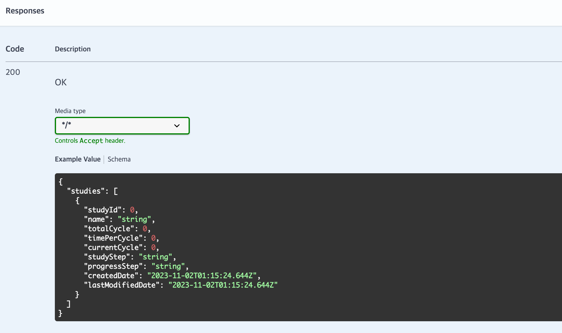 스웨거에서는 `@ApiResponse`를 통해 다음과 같이 명세를 생성할 수 있었습니다.