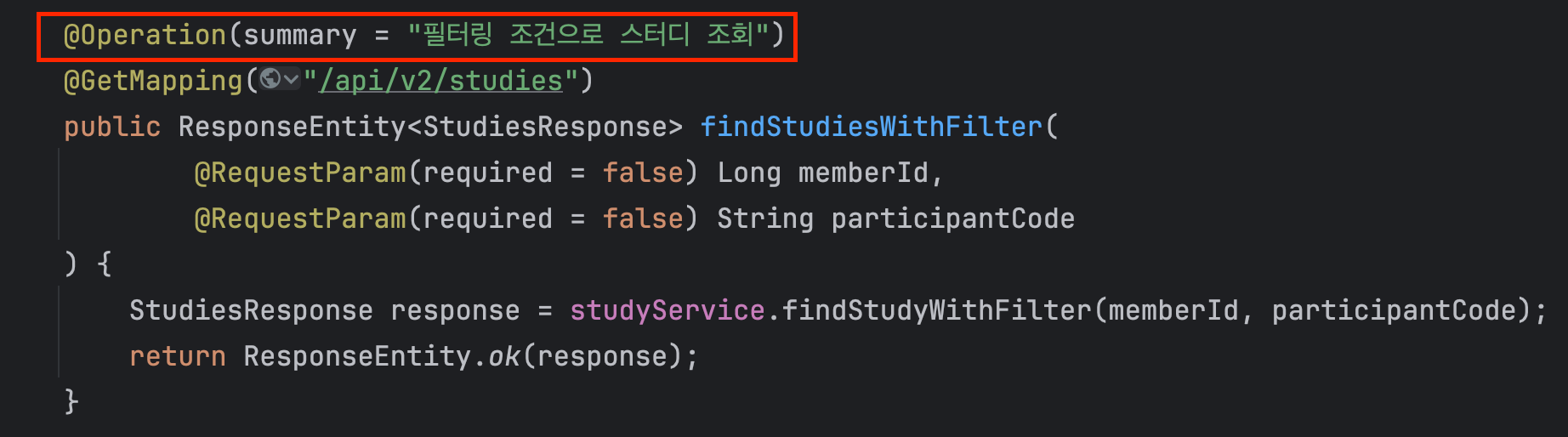 스웨거를 사용하면 다음과 같이 어노테이션만 사용해도 자동으로 api명세를 해줍니다